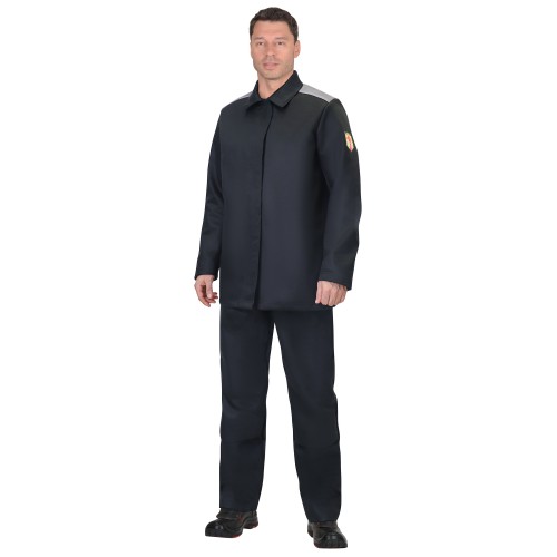 Куртка прямая, с правосторонней потайной застёжкой на пуговицы, отложным воротником, втачными рукавами с внутренней манжетой, двумя внутренними нагрудными карманами с липучкой на подкладке полочек. На куртке в районе подмышек и кокетки спинки вентиляционные отверстия для воздухообмена. Передняя часть куртки от воротника до низа, рукава, боковые и верхняя части спинки с подкладкой из огнеупорной ткани. Куртка с огнеупорной светоотражающей лентой шириной 50 мм для обозначения сигнальной видимости.