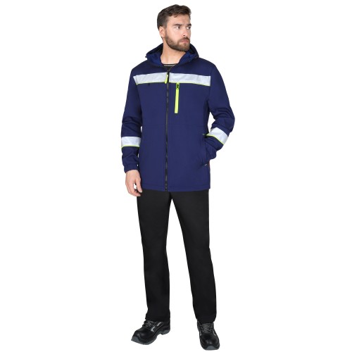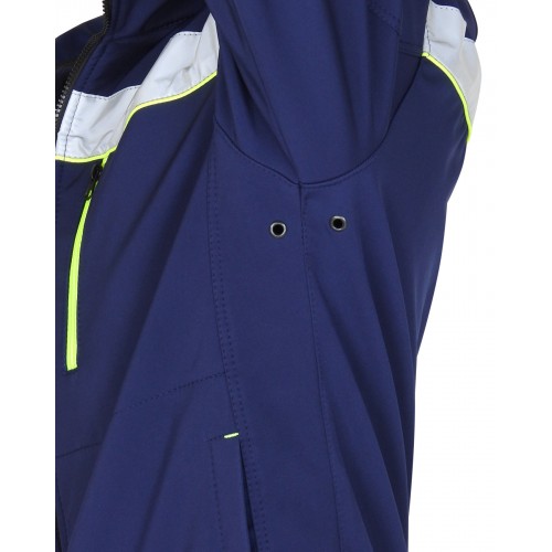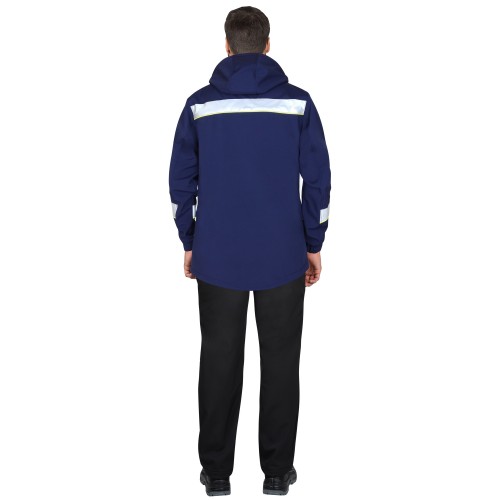 Материал основой: Софтшелл с мембраной, с пропиткой ВО, плотность 350 г/м², состав 100% ПЭ, цвет: темно-синий.