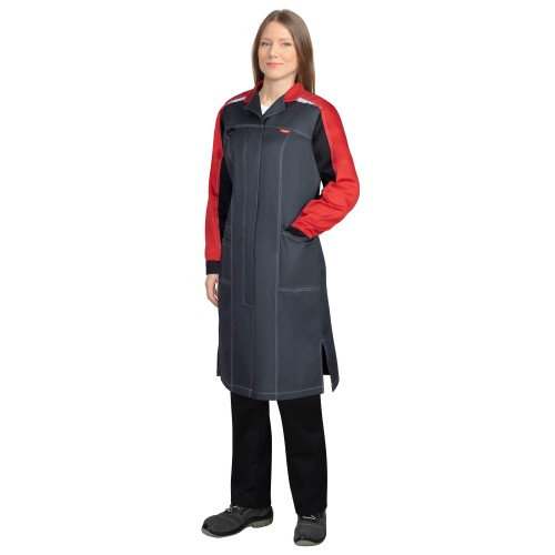 • Халат СИРИУС-ФАВОРИТ-МЕГА женский, тёмно-серый с черным и красной отделкой