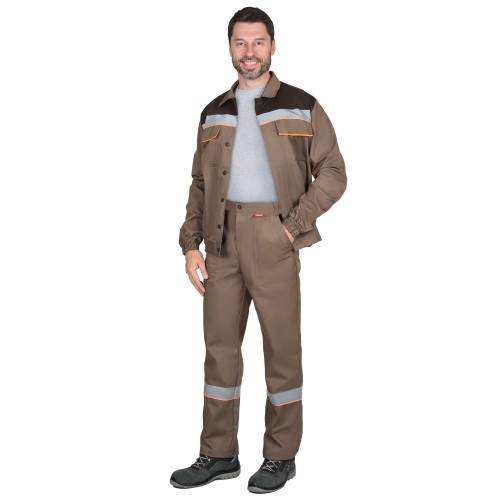 • Костюм СИРИУС-МАСТЕР куртка кор., брюки, кофейный с тёмно-коричневым и оранжевым кантом с СОП
