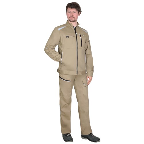 Куртка, прямого силуэта, с декоративными элементами, с втачным воротником стойка, центральной застёжкой на молнию от середины воротника до низа. Куртка с накладными нагрудными карманами, правый карман состоит из двух карманов: карман с вертикальным входом с застежкой на молнию, с горизонтальным наклонным входом с контрастной мешковиной, в кармане предусмотрено крепление бейджа. Левый карман с вертикальным входом с застежкой на молнию, и СВ-кантом для сигнальной видимости. Нижние боковые карманы куртки с наклонным входом с застежкой на молнию, отделочными кантами. Рукава втачные, по низу с отрезной манжетой с застежкой на кнопку. На левом рукаве накладной карман, состоит из двух карманов, вход в карман прикрыт клапаном с застежкой на липучку. Куртка с возможностью регулировки объёма по низу при помощи хлястиков с кнопками.