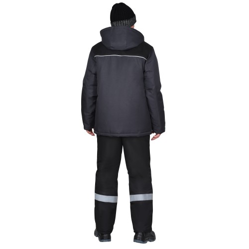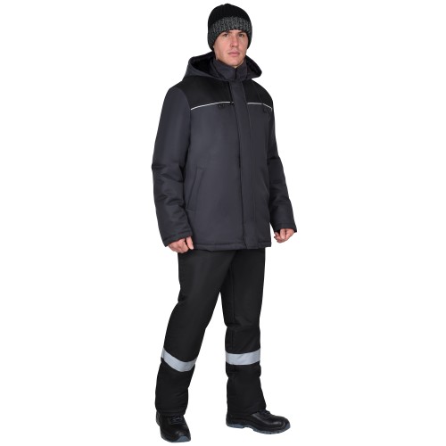 Куртка прямого силуэта, удлинённая, с креплением для бейджа, с втачным капюшоном и воротником стойка, с центральной застёжкой на молнию от края воротника до низа куртки, накрытую ветрозащитным клапаном с потайными липучками. Куртка с нижними прорезными карманами с листочками. Рукава втачные с внутренними трикотажными манжетами. Подкладка куртки утепленная, с внутренним карманом, застегивающимся на липучку. В куртке предусмотрен СВ-кант, для обеспечения сигнальной видимости.