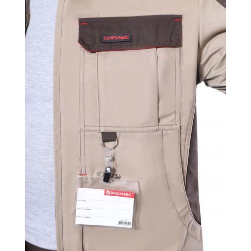 Материал верха основой: ткань механический стрейч с пропиткой ВО, пл. 260 г/м², состав 65%ПЭ, 35%ХБ, цвет: песочный